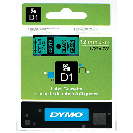 Dymo Labelling Tape D1 12mm X 7M 45019 Black On Green