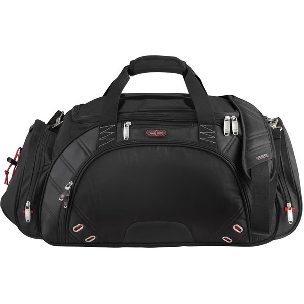 Zippered main compartment with U-shaped opening. Front top media pocket with earbud port. Handles made of durable webbing with comfortable handle wrap. Padded, detachable, adjustable shoulder strap. Signature Elleven lining and hardware.