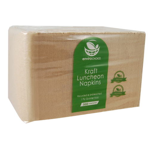 Envirochoice Kraft Napkins 1 Ply Luncheon Qtr Fold 300X300mm Pk500