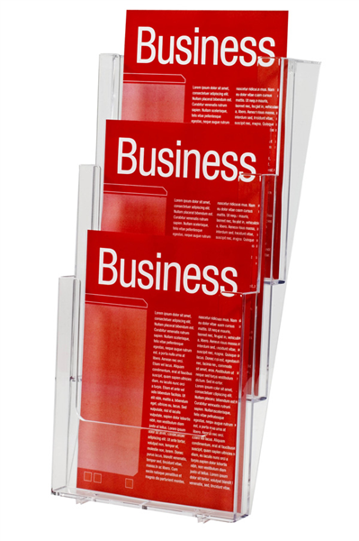 DescriptionHigh quality Brochure Holders are moulded for strength and durability. Perfect for trade shows, office front desks and retail stores. Ideal for showcasing multiple copies of information, business cards or product / service flyers.