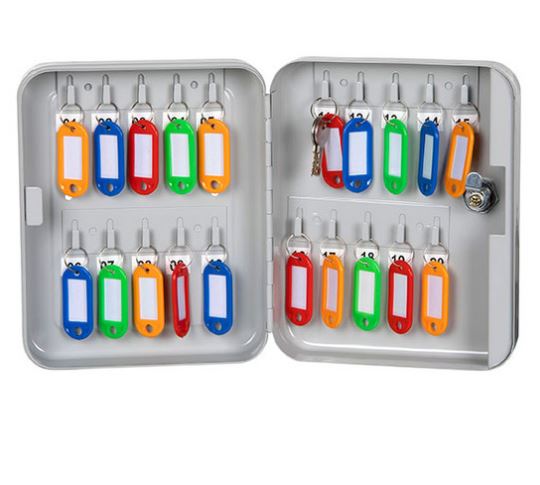 DescriptionEsselte key cabinet features sturdy steel construction with rounded corners for greater strength and durability. Screws and plugs are provided to secure the key safe through pre - slotted holes. Available in 4 different key sizes. With secured lock and 2 keys. Easily wall mounted. Ideal for home, of