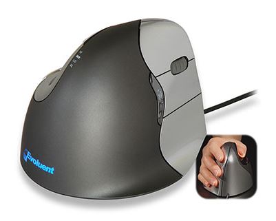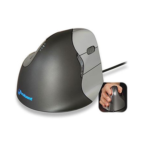 DescriptionThe Evoluent Vertical Mouse 4 SMALL - Right Hand Only promotes neutral forearm positioning and helps to prevent excessive forearm twisting.