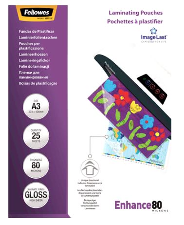 DescriptionPreserve, protect and enhance important documents with Fellowes premium quality laminating pouches. Ensures 100% Jam Free performance when used with Fellowes laminators. Make your document last with Fellowes premium quality laminating pouches. Enhance 80 Micron thickness - providing a basic level of