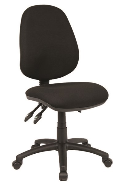 - This fully ergonomic high back operator chair has 3 levers, one each for seat height adjustment, back tilt adjustment and seat tilt adjustment, fabric back and seat.