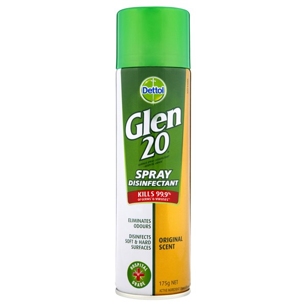 - Our ultimate in germ - busting freshness! Fast and effective, Dettol Glen 20 Disinfectant Spray is easy to use and cares for your family by killing 99.9% of germs and viruses