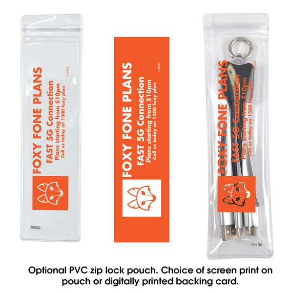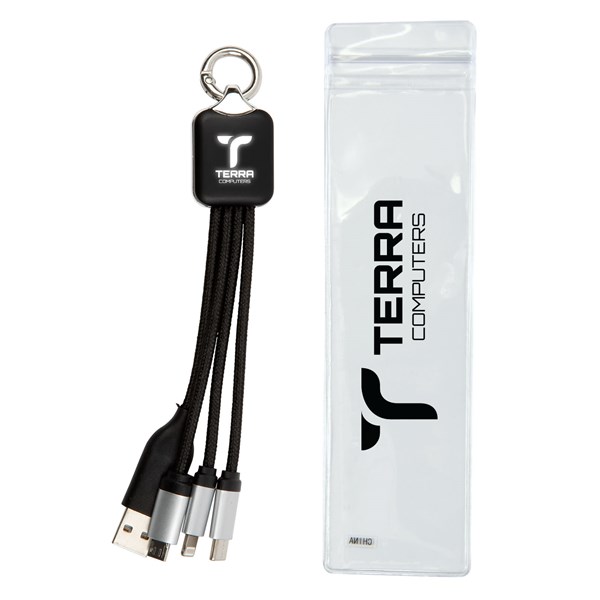The Glimmer Square Glow Cable not only serves as a versatile 3-in-1 charging solution but also adds a unique touch of personalization. This innovative cable features an illuminating white LED top section that lights up when connected to power, making your laser-engraved design or logo glow impressively. It includes 8 Pin, Type C, and Micro USB cables, ensuring compatibility with a variety of mobile devices. With braided cables, silver connectors,