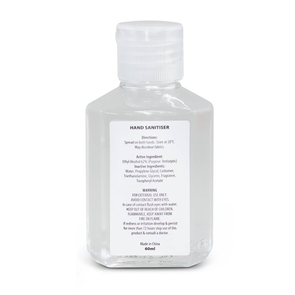 Gel hand sanitiser in a convenient bottle with a no mess flip cap lid. It has ingredients information on the back of the bottle.