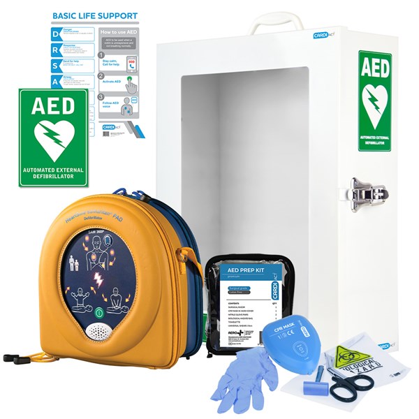 HeartSine 360P Defibrillator AED with Cabinet/Prep Kit/Wall Sign & CPR Chart Package