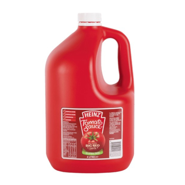 • Catering Sized Heinz 4 litre Big Red Tomato Sauce boasts an immediately recognisable, rich tomato taste ideal for use on pies, sausage rolls, pasties, hot dogs, hot chips and steak sandwiches