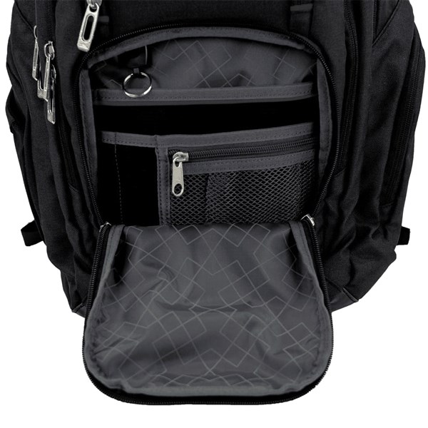 Computer backpack features a padded, lined and dedicated compartment to protect your 17 inch laptop. Main compartment has huge capacity and includes a padded and dedicated tablet sleeve, a lined valuables pocket and a front zippered compartment with an organisational panel and a key fob.