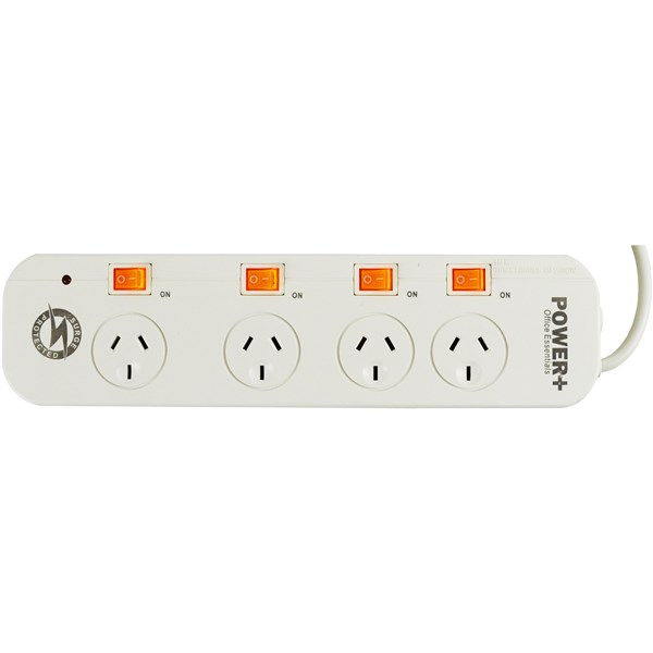 • 4 Outlet Power Board complete with 1 metre lead.Individual Switches.Surge Protection.Overload Protection.Indictor Light.Reset Switch.220-240V, 10A, 2400W (Max.)