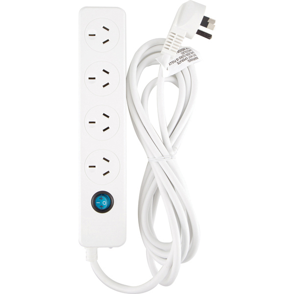 • Powerboard with 4 Outlets.Available with Switch, Surge and Overload protection options.Certified to Australian Standards.Surge Protection.Overload Protection.Master Reset.Switch.3 Metre Lead.