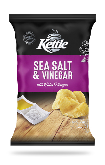 DescriptionSlow cooked in the unique Kettle way, these crunchy delicious potato chips are seasoned with sea salt and vinegar, cooked in sunflower oil and are 100% natural! Available as a small pack of 45 grams.