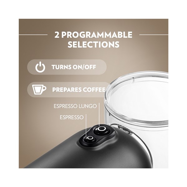 - The machine boasts 2 programmable selections (classic espresso or lungo) thanks to the double delivery button.