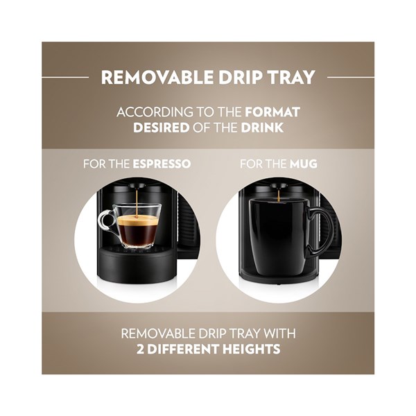 - The machine boasts 2 programmable selections (classic espresso or lungo) thanks to the double delivery button.