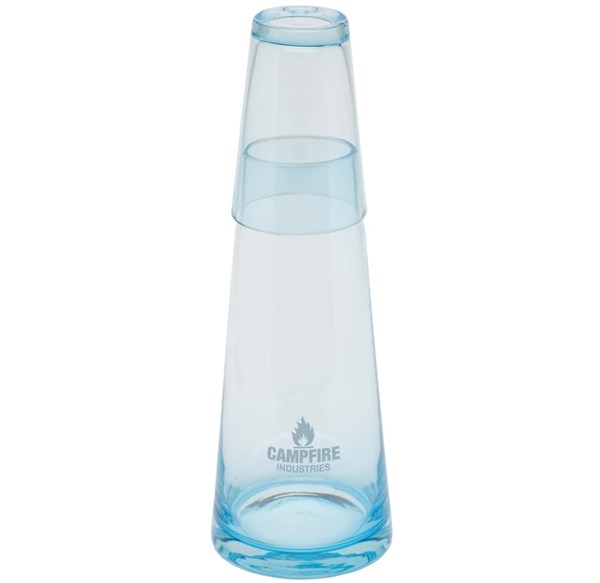 Crafted from hand blown glass, Lugano Jug Set is guaranteed to make the right impression. With its lid doubling as a tumbler, this jug set will take pride of place on any desk. Available in translucent blue or smoke. Each jug set is made from hand blown glass. The result of this high quality method of manufacture is slight variations between products as well as bubbles & small indentations in the glass.