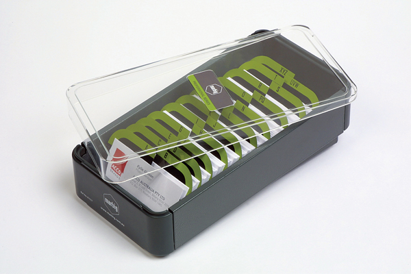 DescriptionKeep contacts at your fingertips. Boxes come complete with plastic A - Z index dividers. Front and rear panels fold down for easy access to cards. Clear lid enables you to see your cards. Box base made from metal.