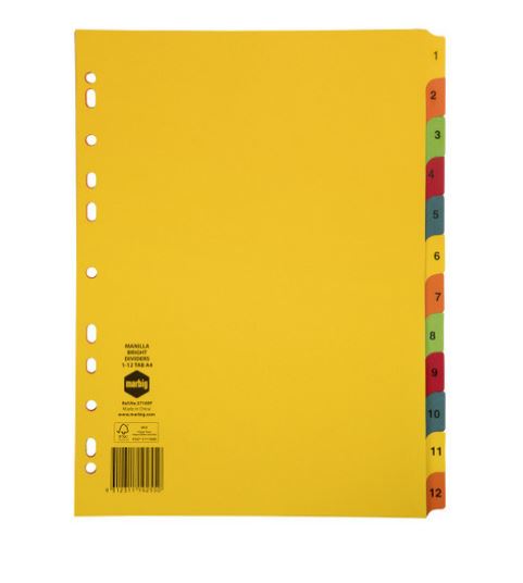 Marbig Dividers Manilla A4 1-12 Tab Bright Colour