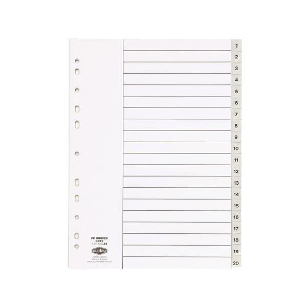 Marbig Dividers Pp A4 1-20 Tab Grey
