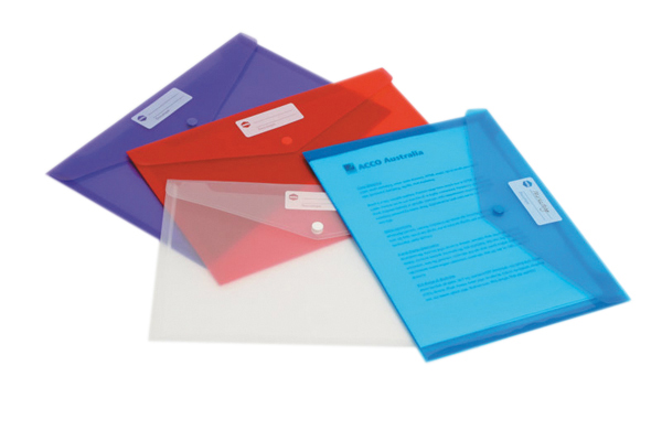Marbig Doculope Document Wallet A4 With Button Assorted Pk 10
