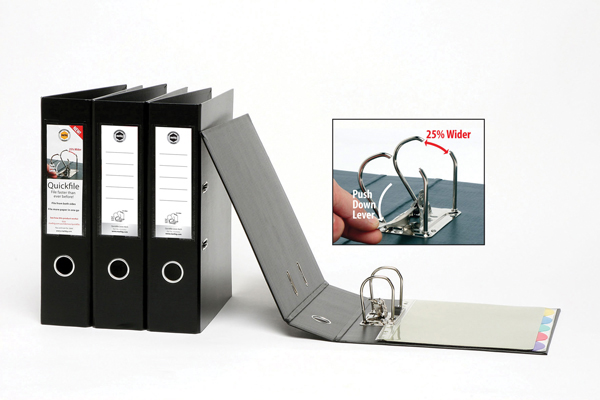 • Quickfile's patented push down lever arch mechanism keeps the lever out of the way for easy filing