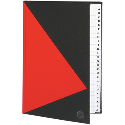 DescriptionStylish, modern Red & Black casebound notebooks. Gloss laminated hardcover protects against wear and tear. Feint ruled lines with red ruled margin. Indexed notebooks are from A to Z.