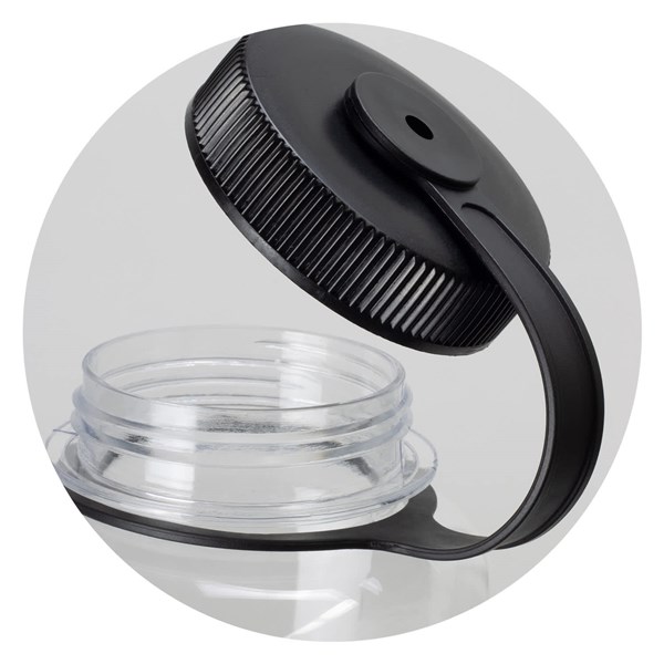 Practical 1L drink bottle, with a screw-on lid with a plastic holder for easy transportation. The bottle is manufactured from Tritan which is odor-resistant and BPA-free. This product is not dishwasher safe and handwashing is recommended.