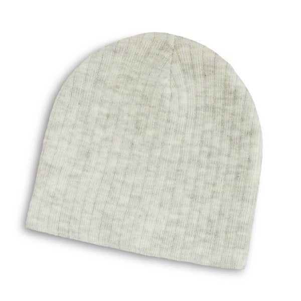 Stylish cable knit beanie made with two-tone acrylic yarn which creates a heathered finish. It is available in one size which will fit most people.