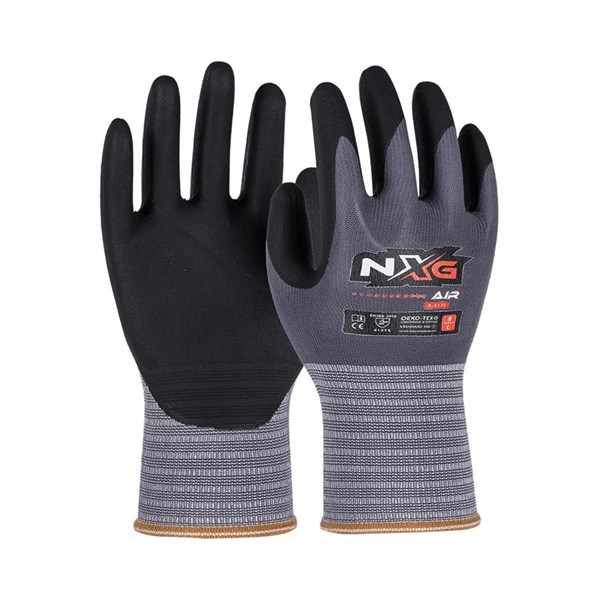 NXG Air A-5130 Gloves Nitrile Coated Black/Grey Size 8