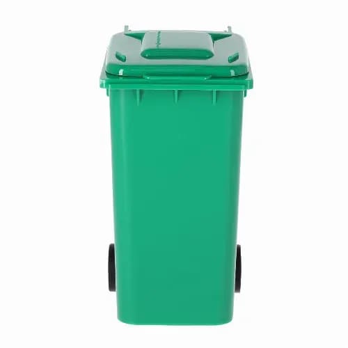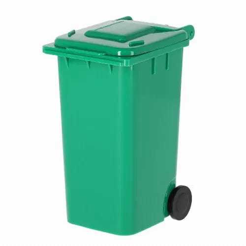 Pencil holder with wheelie bin shape.In a variety of bright colours