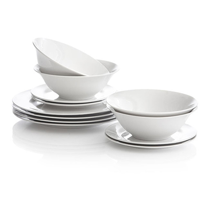 • Set up your dining or kitchen table with this 12 piece porcelain dinner set with a white design