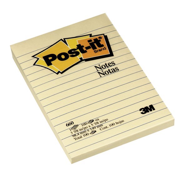 Post-It Notes 660 Lined Notes 101X152mm Canary Yellow 100