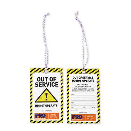 DescriptionOut of Service safety tags have the yellow caution design on the border on all four sides. It is non - tear and suitable for all weather conditions. The size of each tag is 125mm x 75mm.