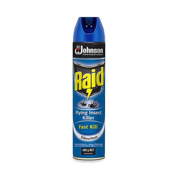 • Raid Odourless rapidly knocks down flies, mosquitoes and other annoying insects without a fragrance