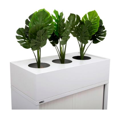 The Go Planter Box sits perfectly on top of a GO Tambour Door Cupboard or GO Lateral Filing Cabinet to display greenery.