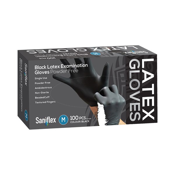 Saniflex Gloves Latex Exam Powder Free Black Medium Bx100