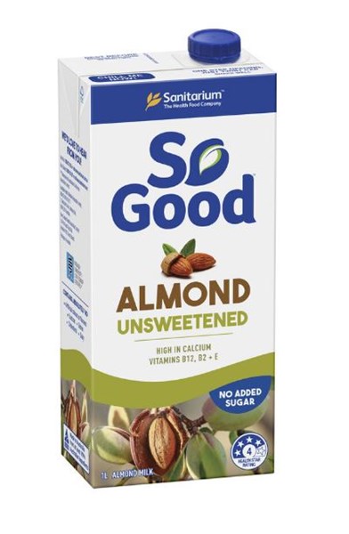 DescriptionSo Good Almond Milk is a delicious plant-based beverage made from almonds. So Good Almond Milk can be enjoyed by the glass, on cereal, or in your favourite recipe. It's a natural source of the antioxidant vitamin E, is low in fat and saturated fat, and is also lactose and gluten free. So Good Almond