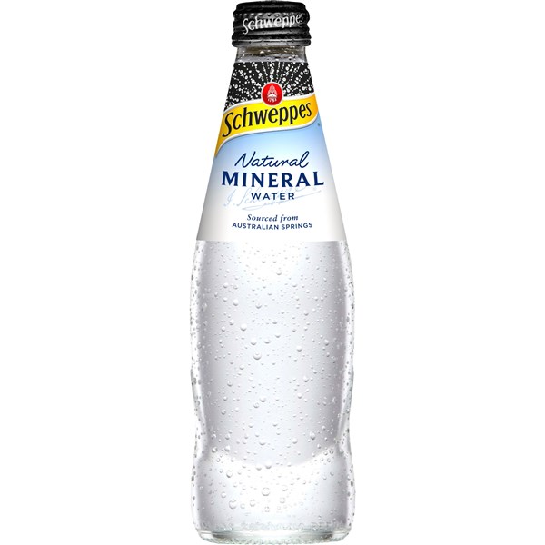 • Clean, crisp Schweppes Natural Mineral water is sourced from selected Australian natural springs and has the perfect amount of Schweppervesence to refresh your palate
