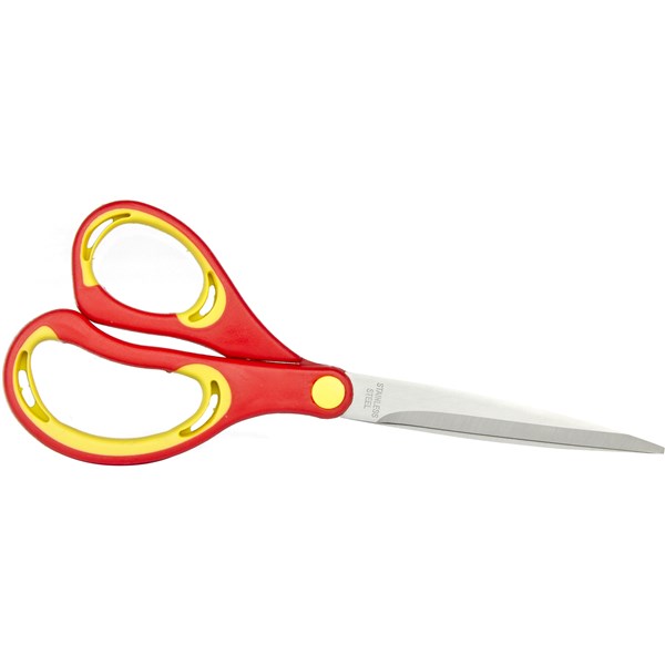 DescriptionQuality scissors with stainless steel blades and strong, durable edges. It comes with a comfortable, moulded grip handles for effortless, easy cutting. These scissors are suitable for cutting cardboard, paper, tape, cloth and many other materials in the office or home.