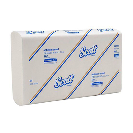 • One pack of Scott® large optimum hand towels contains 150 towels and one carton contains 16 packs