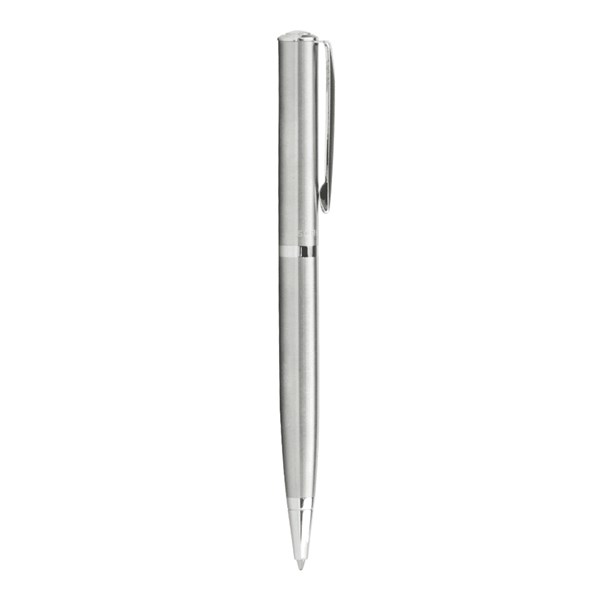 Exclusive design, light weight metal ballpoint in a matte brushed silver with chrome coloured details and a scriptura clip.