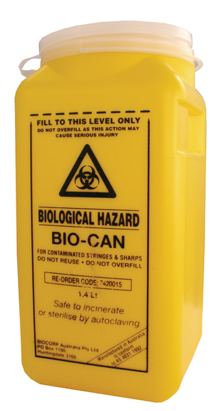 DescriptionHighly visible sharps container to store sharps safely until disposal with our range of sharps containers. It is a 1.4 litre capacity sharps container. It comes with hazard warning on the label and is made of durable plastic.