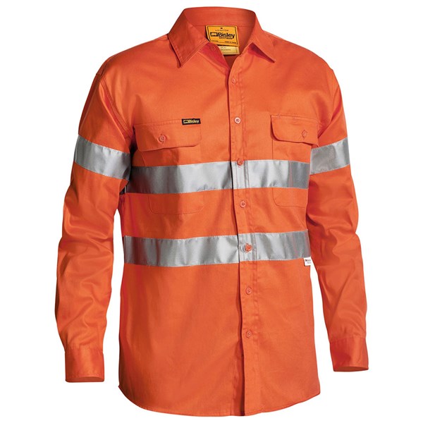 Shirt L/S Cotton Drill 190gsm 3M Tape Hi Vis Orange Small Bisley