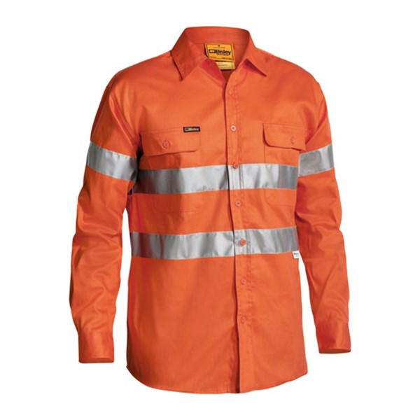 Shirt L/S Cotton Drill 190gsm 3M Tape Hi Vis Orange XS Bisley