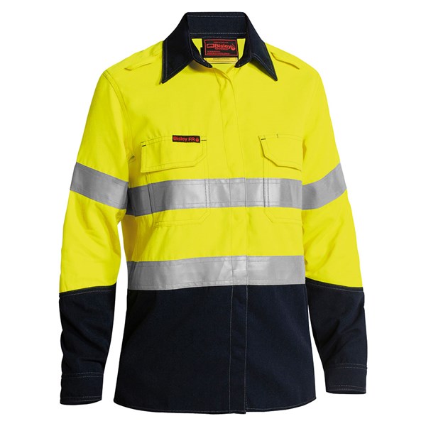 Shirt Womens L/S TenCate Tecasafe 238gsm Vent FR Tape Yellow/Navy 8 Bisley