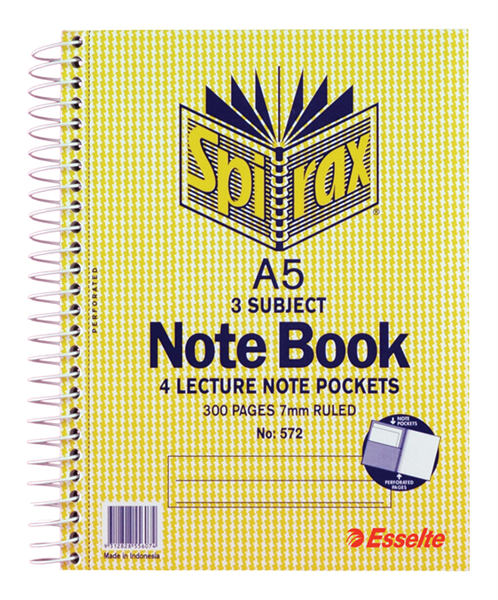 Spirax 572 Notebook 3 Subject A5 210X158mm 300 Pages