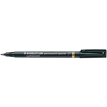 DescriptionFor many special applications such as coated surfaces, nano coatings, optical glass, laboratory glass. Also for use on silicone, laminating film and newest generation of optical glass. Adheres to many special surfaces which other markers do not adhere to. The black Lumocolor permanent special F and