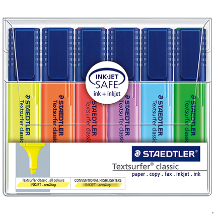 DescriptionHighlights all types of paper. Super brilliant, fluorescent colours. Convenient clip cap. Inkjet safe, which means highlighted text on inkjet printed documents won't smudge. Violet and turquoise feature copysafe ink, which means highlights remain visible when photocopied.