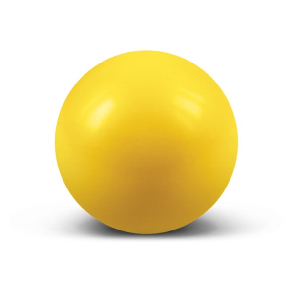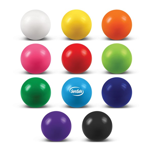 Round ball shaped squeezable stress reliever made from soft polyurethane.