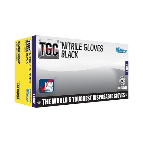 TGC Heavy Duty Nitrile Disposable Gloves Black Size Small Pk100